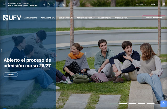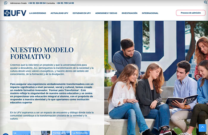 Desarrollo para la consultora SlashMobility, del site corporativo en WordPress de la Universidad Francisco de Vitoria de Madrid.